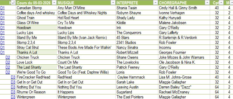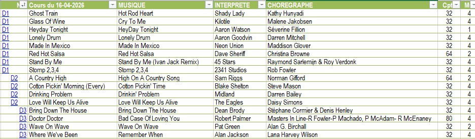 | SAISON 2025-2026 Récapitulatif des danses par cours 05-03-2026 12-03-2026 19-03-2026 05-02-2026 12-02-2026 19-02-2026 08-01-2026 15-01-2026 22-01-2026 29-01-2026 04-12-2025 11-12-2025 06-11-2025 13-11-2025 20-11-2025 27-11-2025 02-10-2025 09-10-2025 16-10-2025 23-10-2025 30-10-2025 11-09-2025 18-09-2025 25-09-2025 |